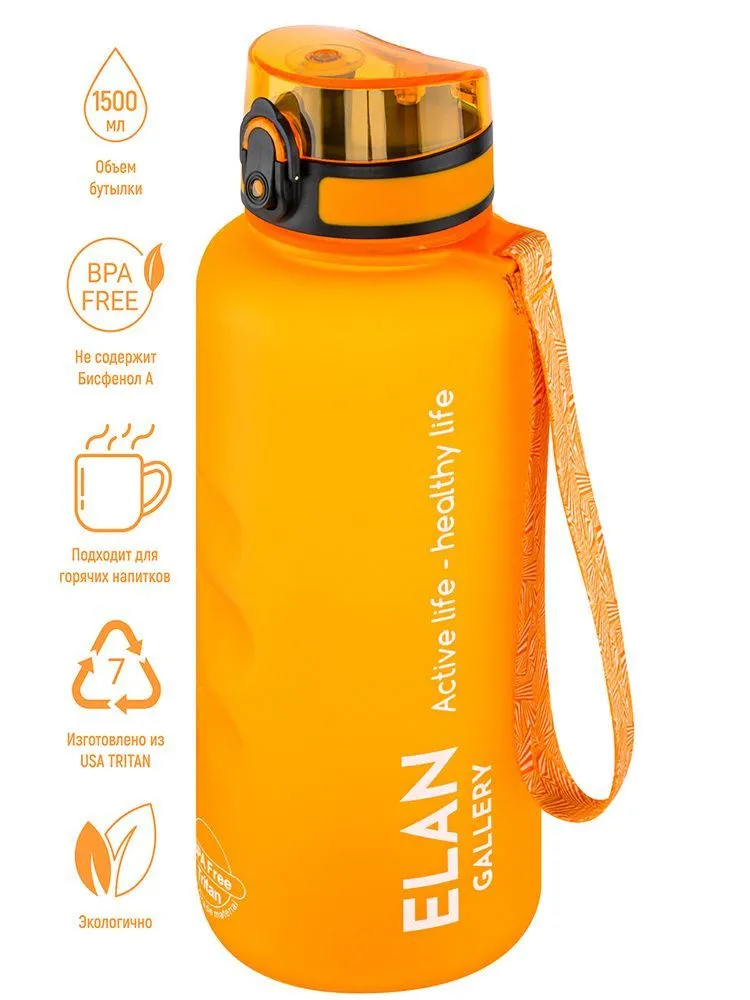 Бутылка для воды "Style Matte" оранжевая 10*10*28,5 см 1,5 л, высота до крышки 24 см, с ситом, с защитным клапаном от протечек, кнопкой для открывания