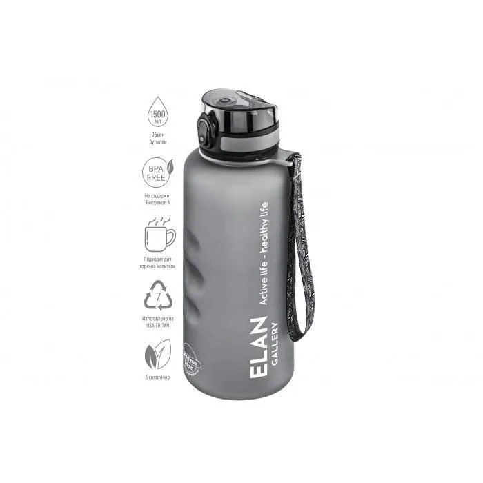 #Бутылка для воды "Style Matte" серая 10*10*28,5 см, 1,5 л, высота до крышки 24 см, с ситом, с защитным клапаном от протечек, кнопкой для открывания,