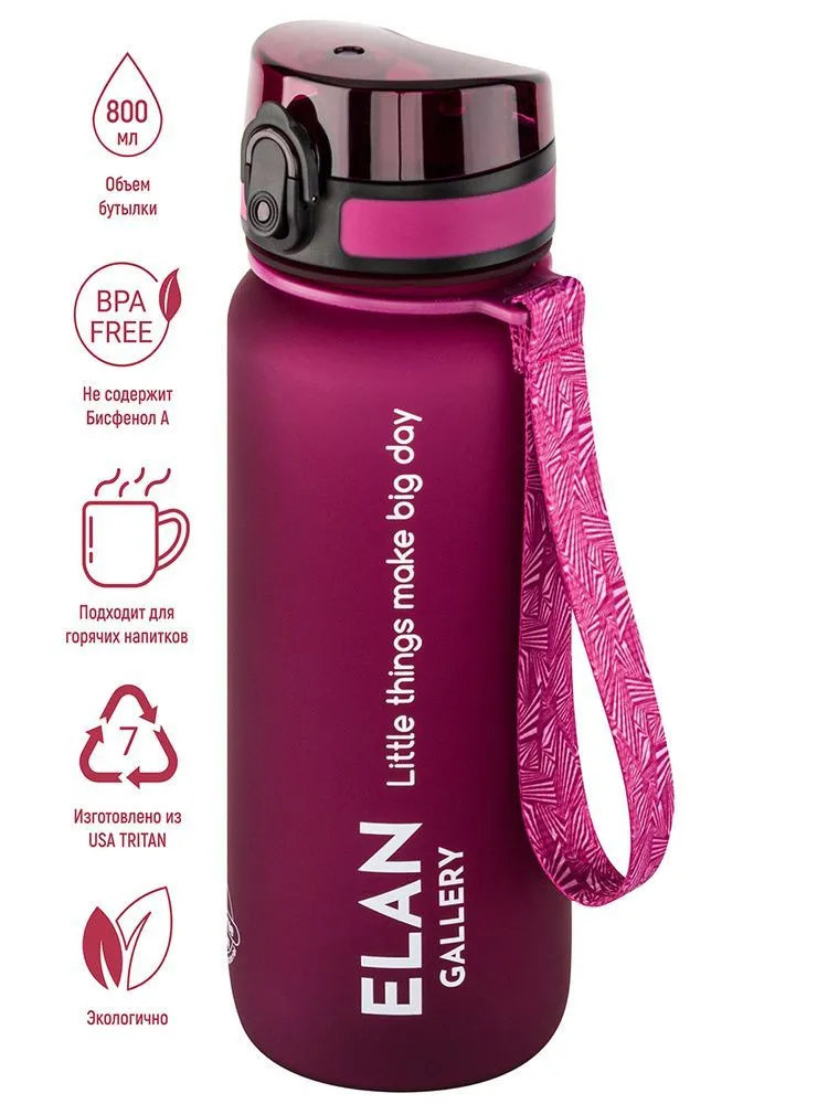 Бутылка для воды "Style Matte" бургундия 7,8*7,8*25,5 см 800 мл, высота до крышки 21 см, с ситом, с защитным клапаном от протечек, кнопкой для открыва