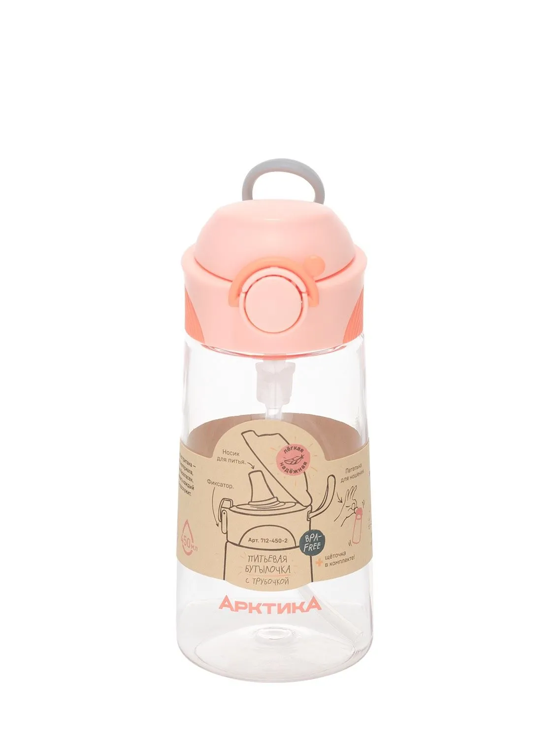 Бутылочка детская питьевая, бытовая, тритановая (для напитков), тм "Арктика", 450 мл, арт. 712-450 персик