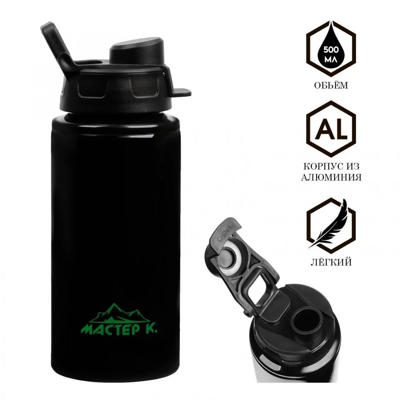 Бутылка для воды, 500 мл, "Мастер К", 19 х 7.3 см, корпус из алюминия 9760111