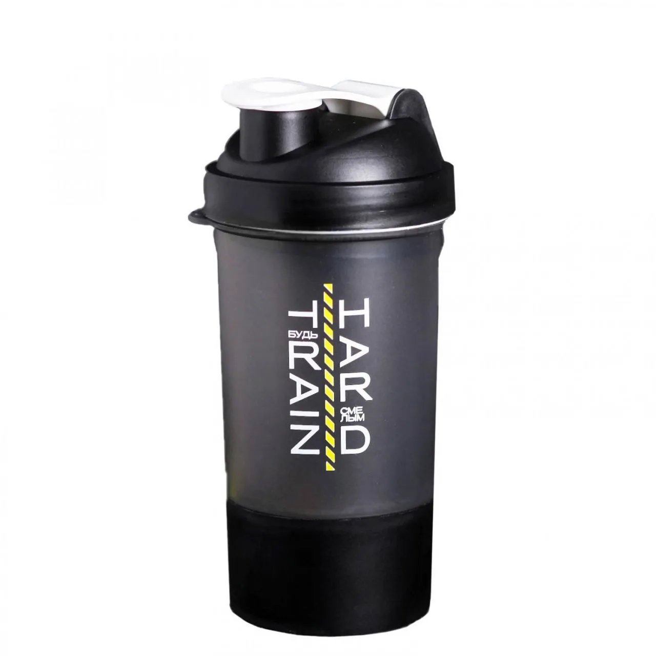 Шейкер спортивный "Train hard, будь смелым", чёрный, с чашей под протеин 500 мл 4593682