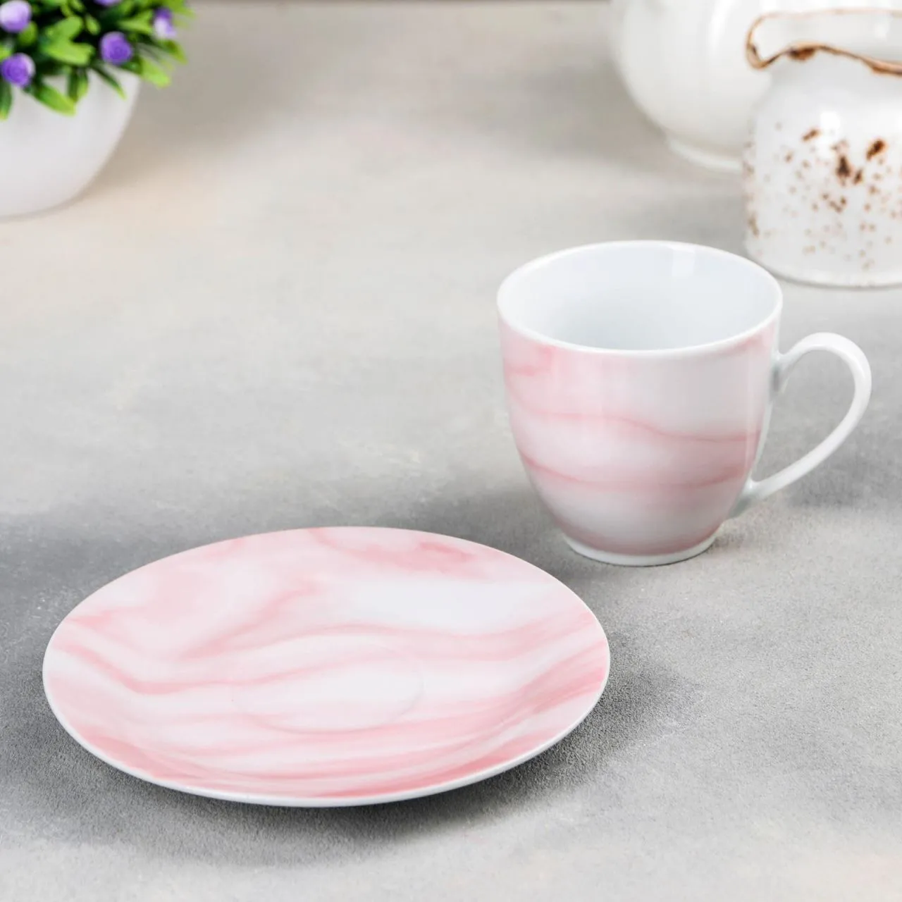 Чайная пара "Мрамор", чашка и блюдце, цвет розовый и серый MB02