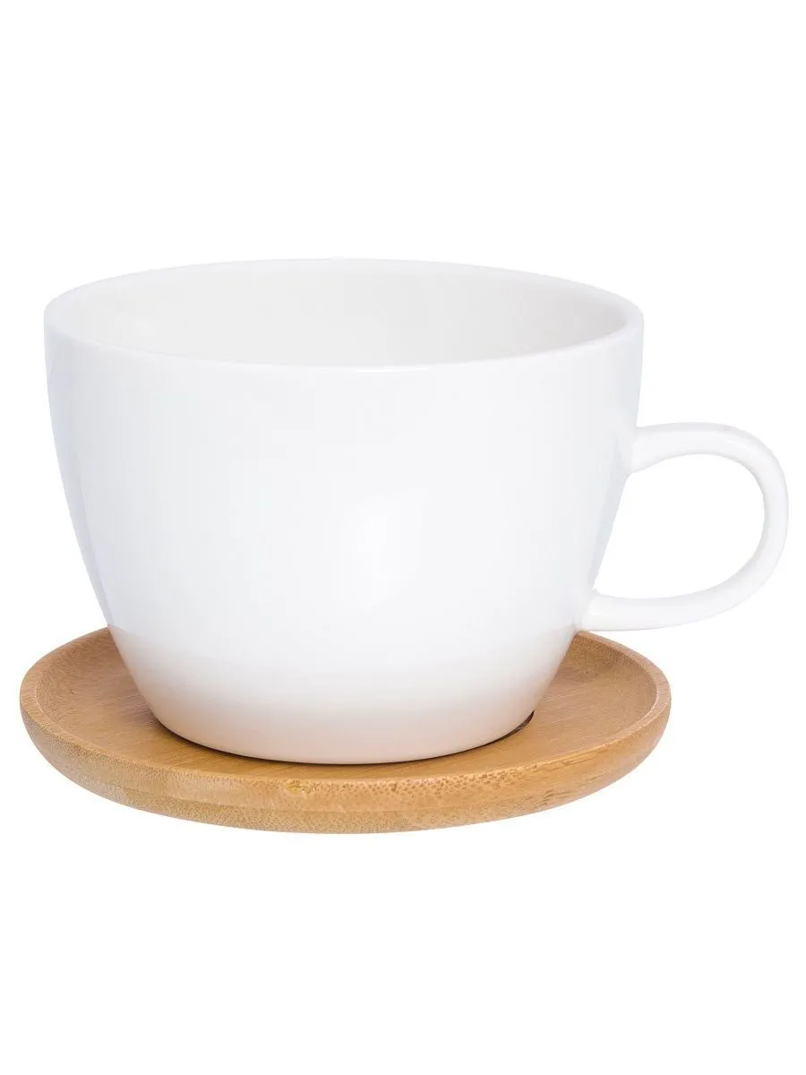 Чашка для капучино и кофе латте "Снежная королева" 500 мл 14,5*12,8*9 см, с деревянной подставкой, диаметр подставки - 12,8 см