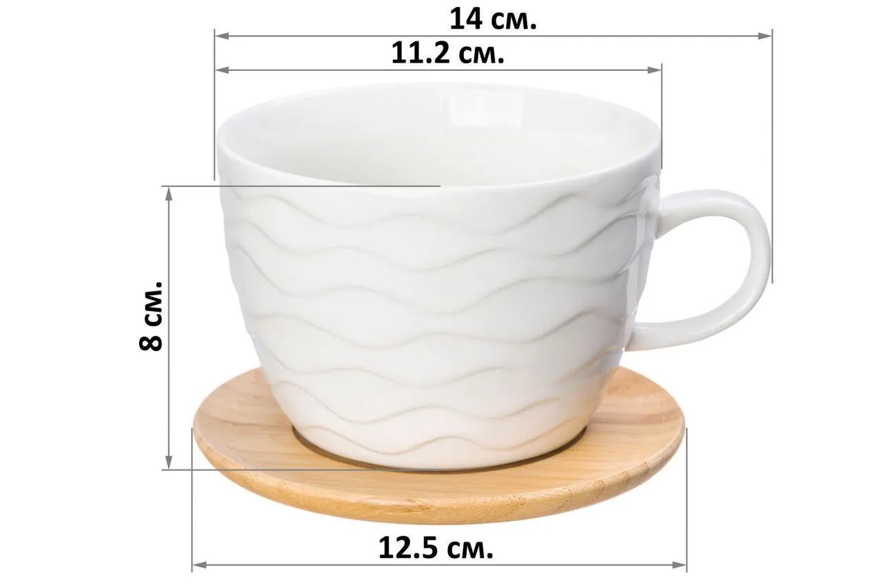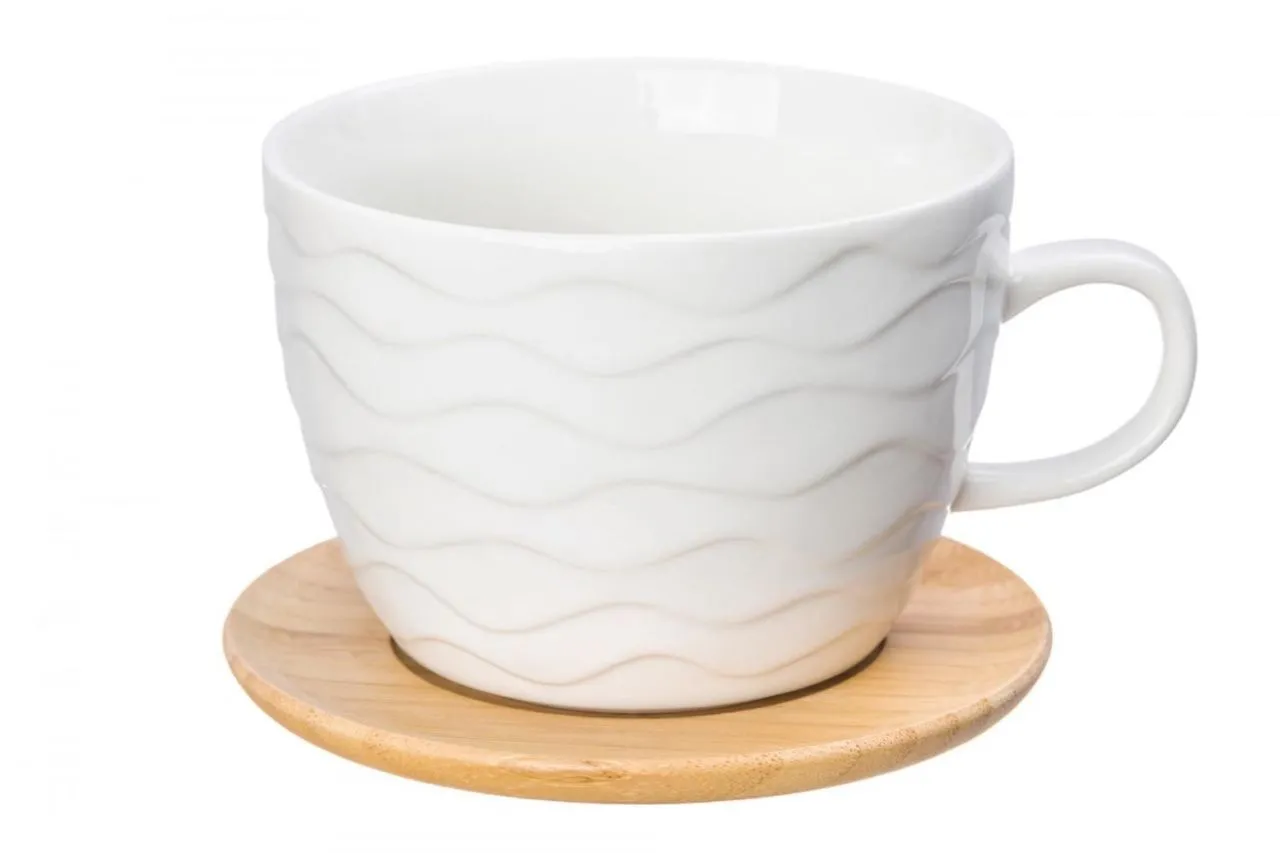 #Чашка для капучино и кофе латте "Айсберг" 500 мл 14*11,2*8 см, с деревянной подставкой, диаметр подставки - 12,5 см, высота подставки - 0,5 см