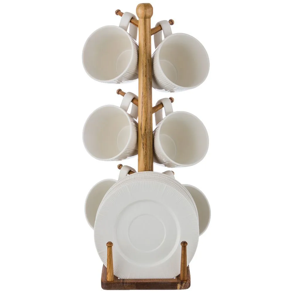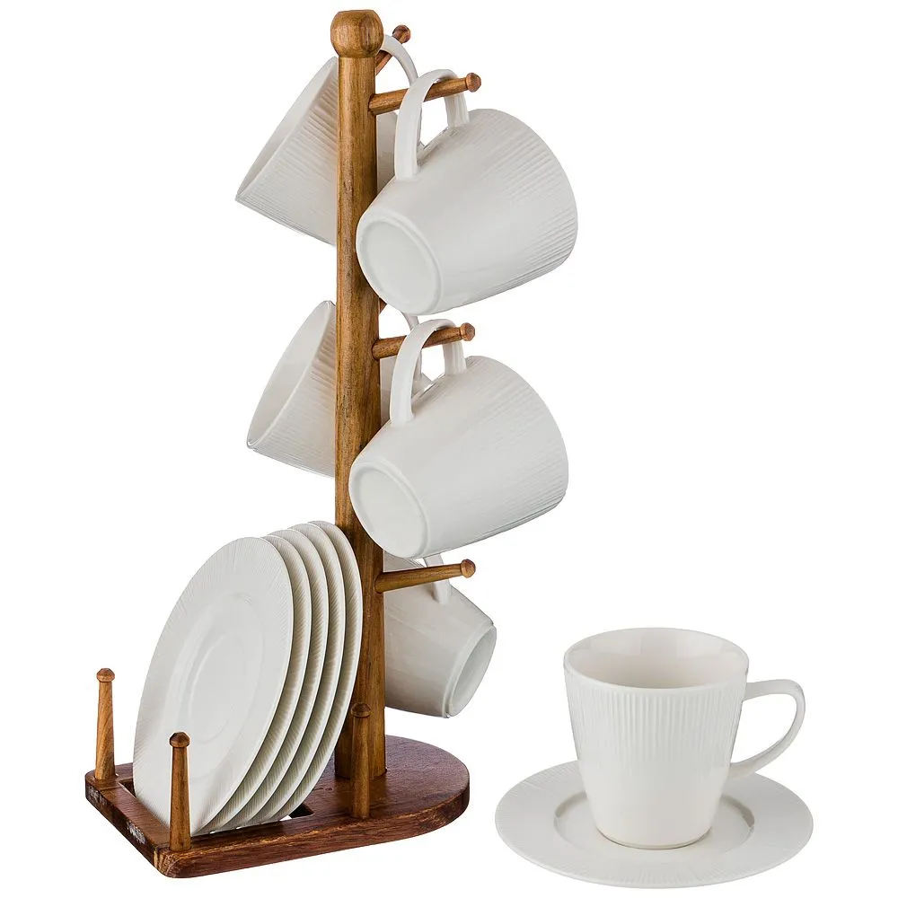 ЧАЙНЫЙ НАБОР НА 6 ПЕРСОН 12 ПР. НА ДЕРЕВЯННОЙ ПОДСТАВКЕ ОБЪЕМ ЧАШКИ= 200 МЛ 235-110