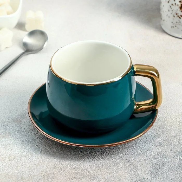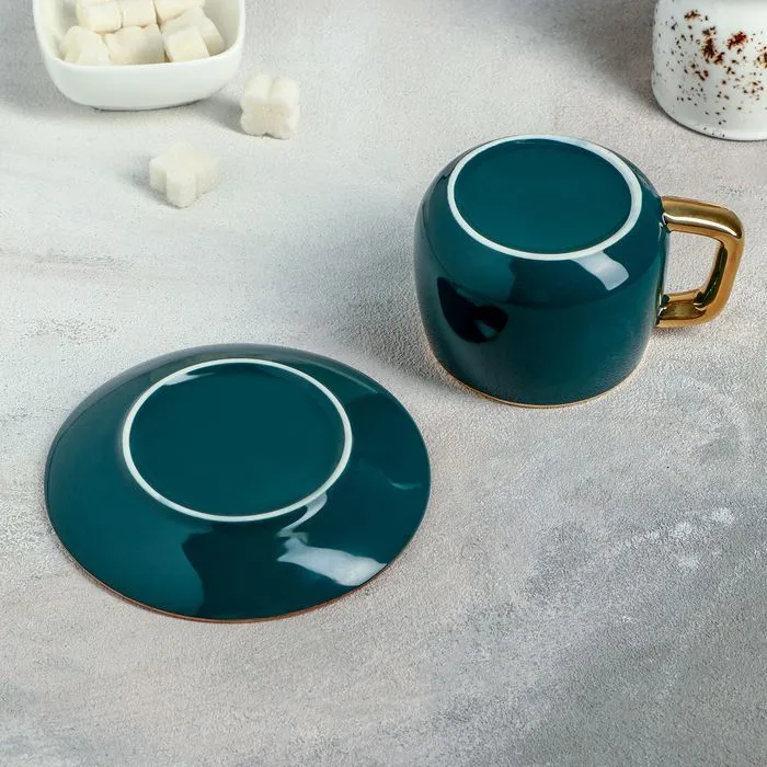 Чайная пара "Изумруд" чашка 200 мл, 12х9,5х6,5 см, блюдце 13,5 см 4486585