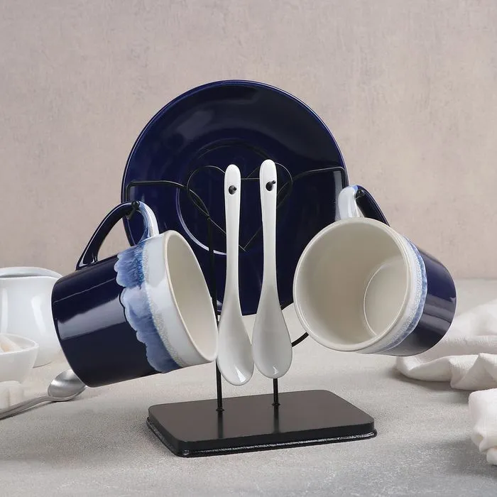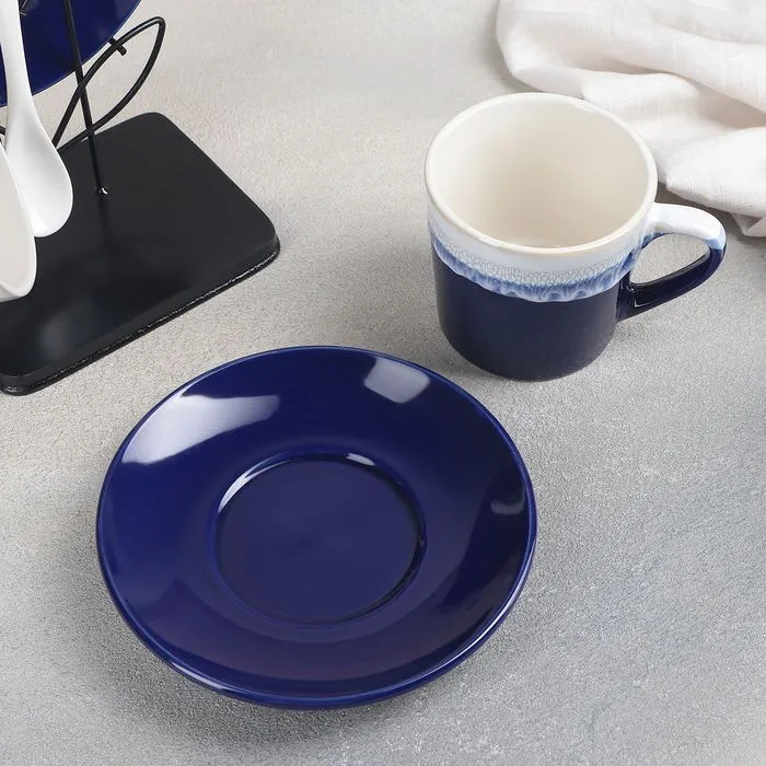 Набор чайный на металл подставке 6 пред "Волна" 2 чашки 200 мл, 2 блюдца 14 см, 2 ложки 4624674