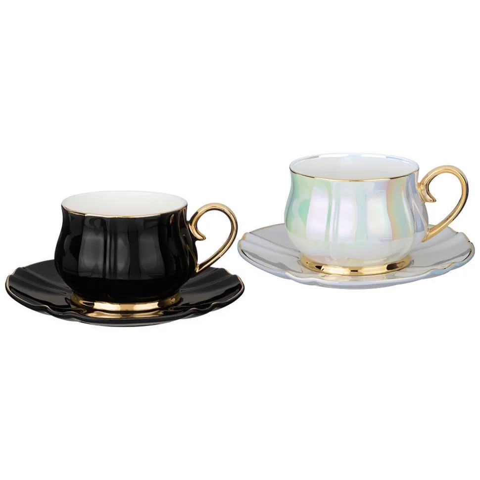 ЧАЙНЫЙ НАБОР НА 2 ПЕРСОНЫ 4 ПР. LEFARD "PEARL" 200 МЛ ЧЕРНЫЙ И БЕЛЫЙ (КОР=12НАБ.)