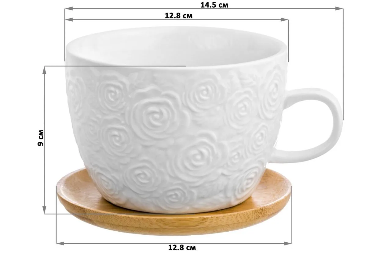 #Чашка для капучино и кофе латте "Розы" 500 мл 14,5*12,8*9 см, с деревянной подставкой, диаметр подставки - 12,8 см