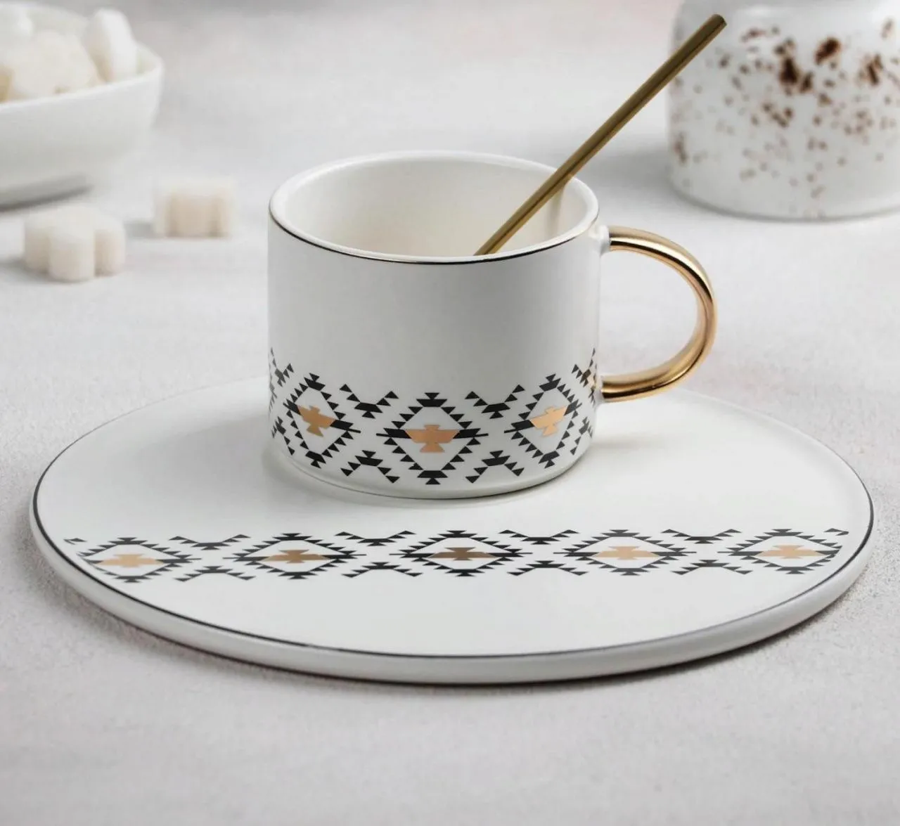 Чайная пара с ложкой "Орнамент" кружка 280 мл, тарелка 20х20х1 см 4343163