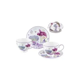 #Чайный набор "Лаванда" 12 предметов, чашка - 12,5*9,5*7 см, 300 мл, блюдце - 15*15*2 см, на ножке, в п/у, NEW BONE CHINA