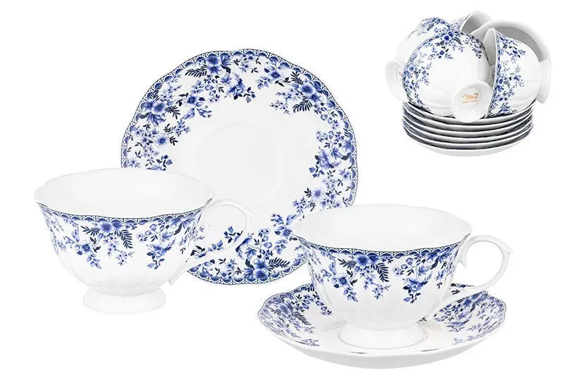 Чайный набор "Цветочек синий" 220 мл 12 предметов, чашка - 12,5*10*7 см 220 мл - 6 шт., блюдце - 15*15*2 см - 6 шт., NEW BONE CHINA, в п/у