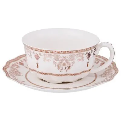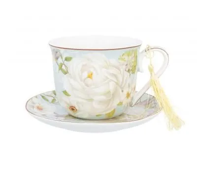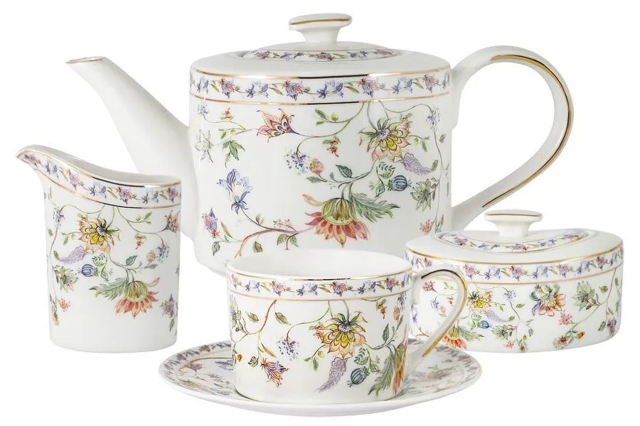 Чайный сервиз "Флора" (белая) из 15 предметов: 6 чашек 0.25л, 6 блюдец, чайник 1.0л, сахарница 0.25л, молочник 0.25л в подарочной упаковке