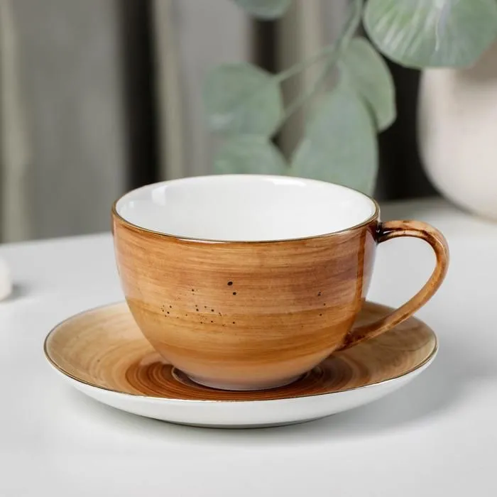 Чайная пара Доляна «Млечный путь», чашка 220 мл, блюдце d=13,5 см, цвет коричневый