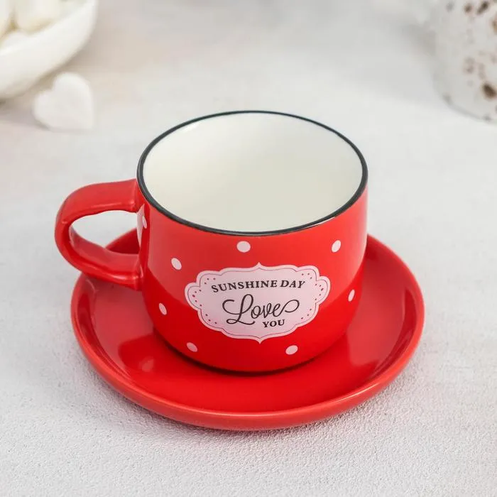 Чайная пара "Влюбленность" чашка 200 мл, 11х8х6,5 см, блюдце 12,5х1,5 см, цвет МИКС 3929485
