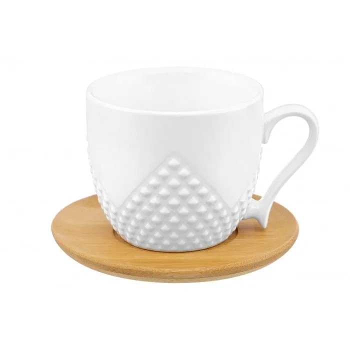 #Чашка для капучино и кофе латте "Ромбики" 11*8,3*7,5 см 220 мл, с деревянной подставкой, диаметр подставки - 12 см