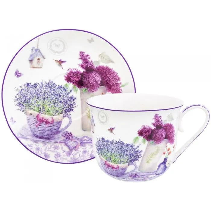 #Чайная пара "Лаванда" 2 предмета, чашка - 14*11*8,5 см 500 мл, блюдце - 16,4*16,4*2 см, в п/у, NEW BONE CHINA