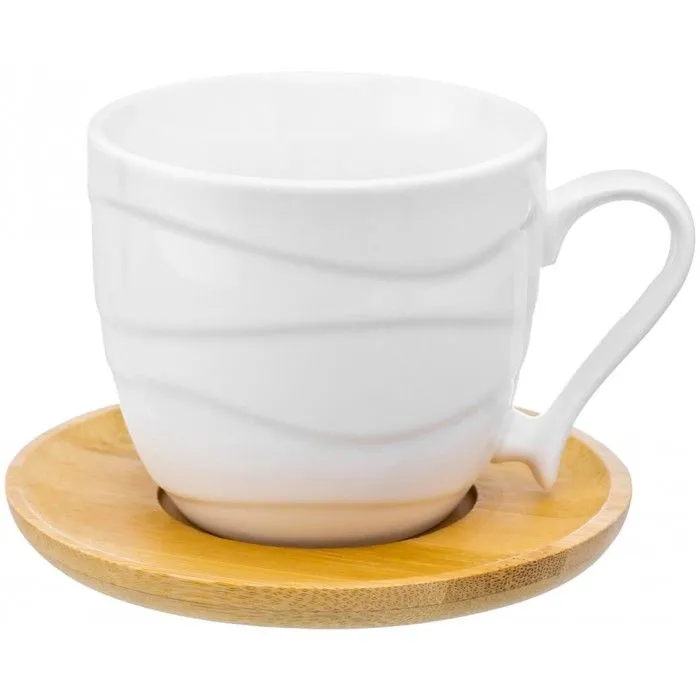 Чашка для капучино и кофе латте "Айсберг волны" 11*8,3*7,5 см, 220 мл, на деревянной подставке, диаметр подставки - 12 см