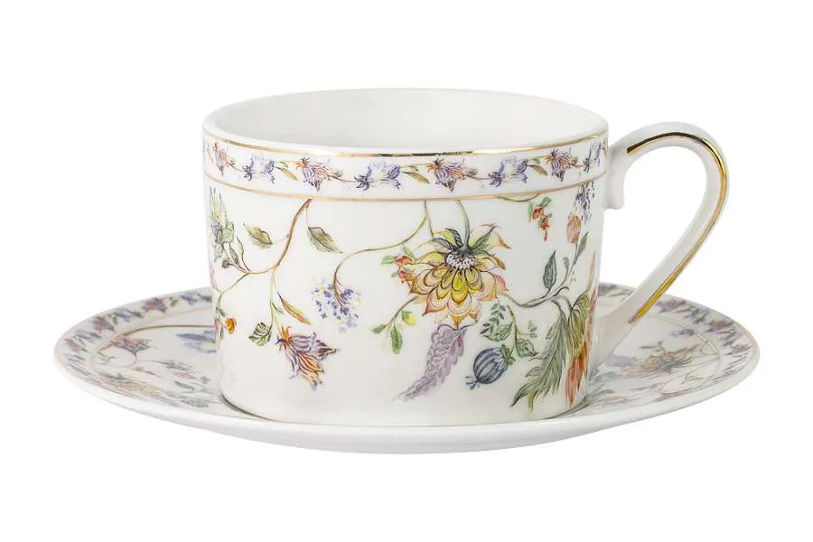 Чашка с блюдцем 0.25л "Флора" (белая) в подарочной упаковке