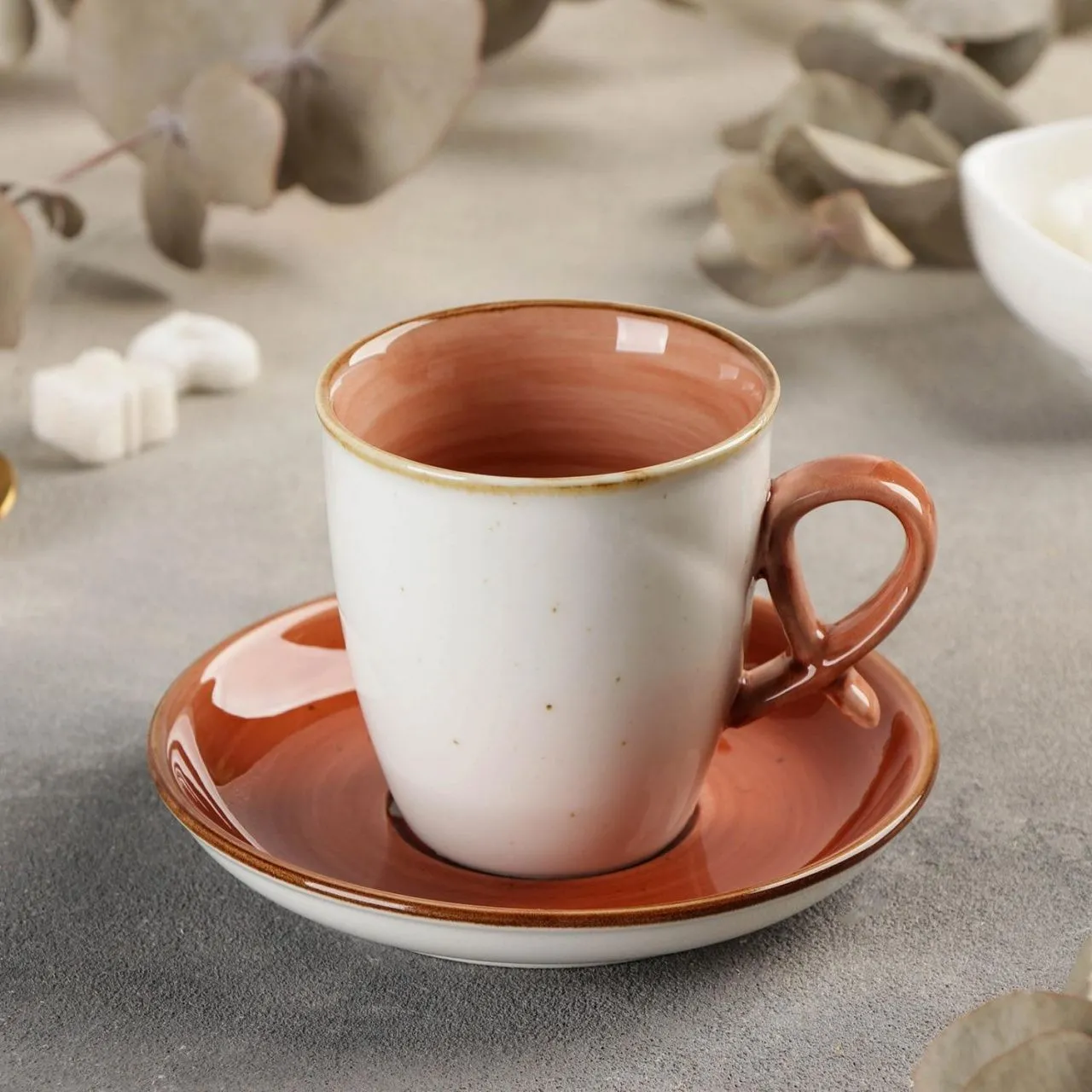 Чайная пара "Аура" чашка 200 мл, блюдце 13 см, цвет оранжевый 6981331