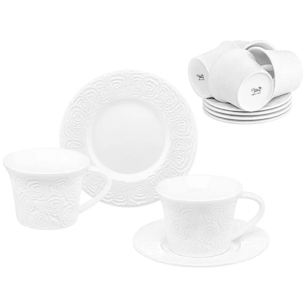 #Чайный набор "Розы" 12 предметов, чашка - 11,5*9*6,5 см 220 мл - 6 шт., блюдце - 15*15*2 см - 6 шт.