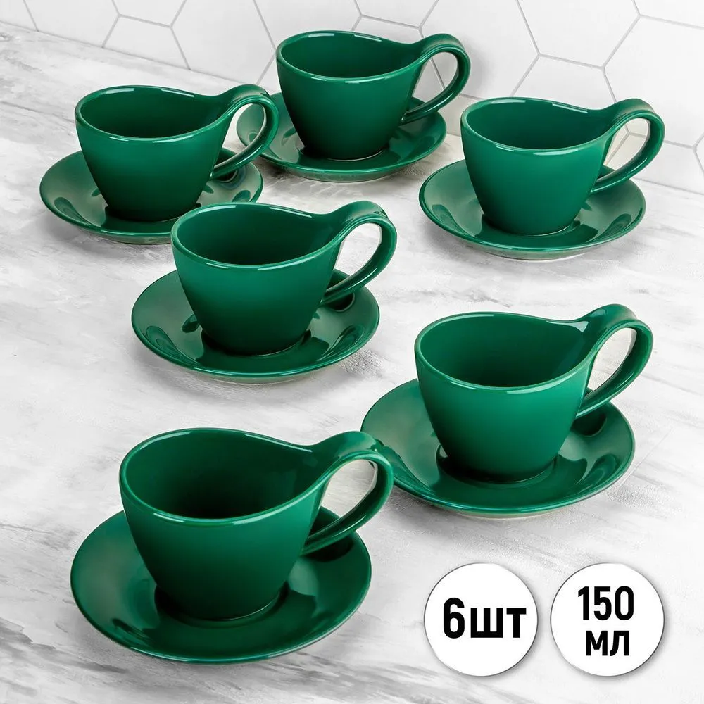 #Чайная пара 2 предмета "Колоранс" зеленая, чашка - 12,5*8*6,5 см, 150 мл, блюдце - 14*14*2 см 540755
