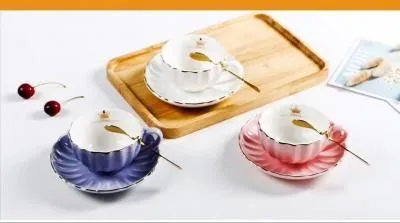 #Чайная пара "Глазки" с ложкой, 350 мл, белая, цвет ручки микс