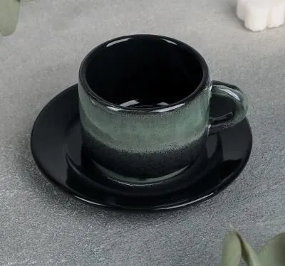 #Чайная пара с ложкой "Sun and Moon" 200 мл, цвет зеленый, черный, розов