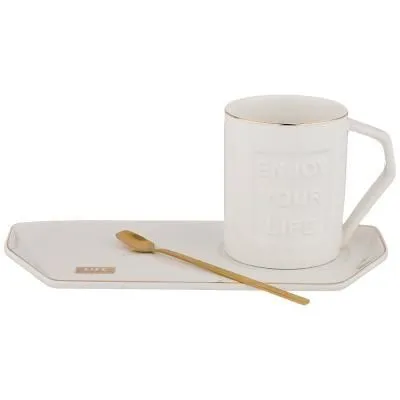 Чайный набор: чашка, большое блюдце для десерта и ложка "Этно" 200 мл