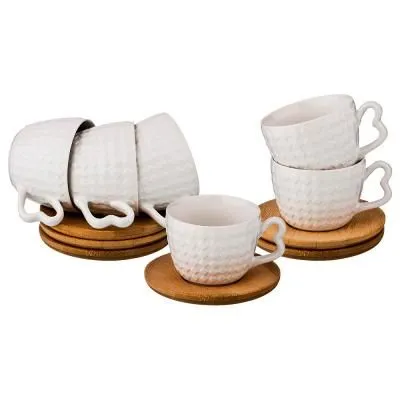 #Набор из 4-х чашек 0.11л(бел;св.сер;сер;чёрн.) на подставке (акация) "Время отдыха" в подарочн уп