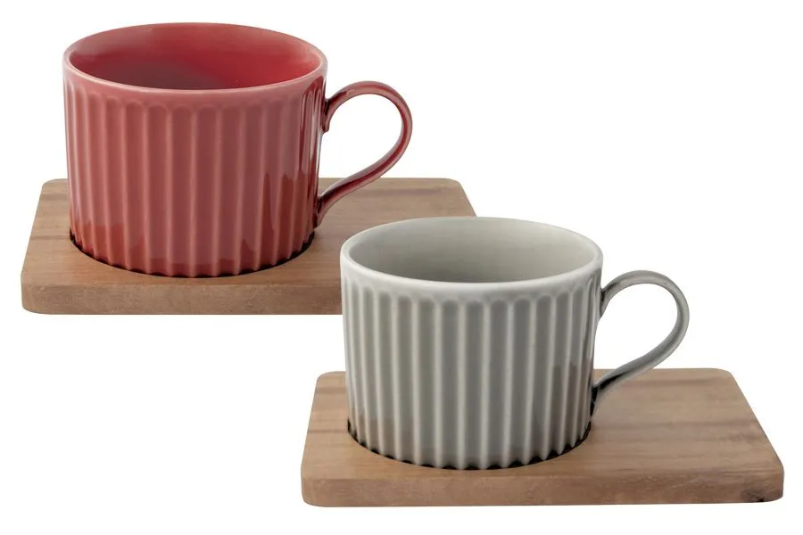#Набор из 2-х чашек 0.25л(красн.+серый) на подставке (акация) "Время отдыха" в подарочной упаковке.