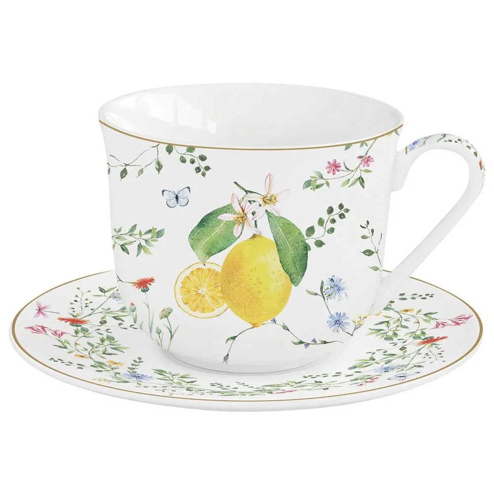 #Чашка с блюдцем 0.37л "Цветы и лимоны" в подарочной упаковке.