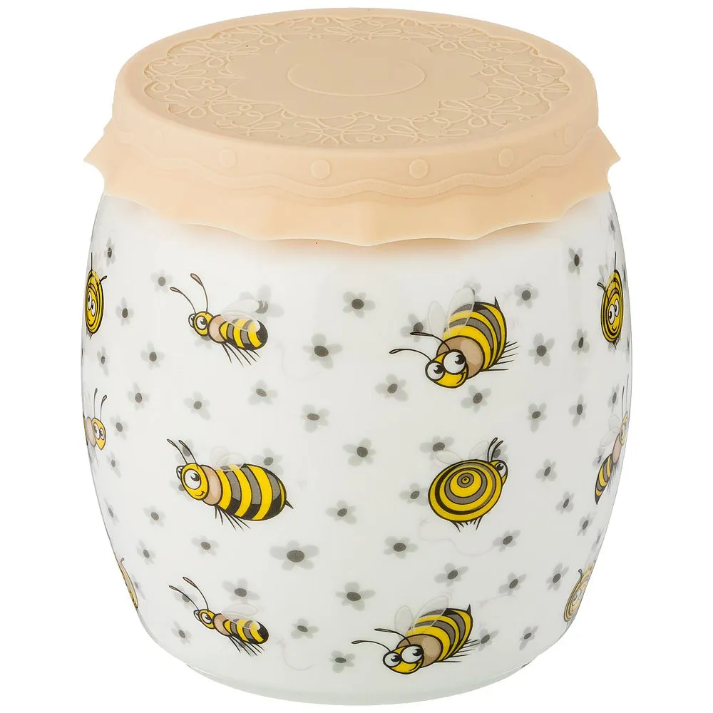 БАНОЧКА ДЛЯ МЕДА/ВАРЕНЬЯ С СИЛИКОНОВОЙ КРЫШКОЙ "ПЧЕЛЫ" 1000МЛ 12,5*13,5СМ 359-572