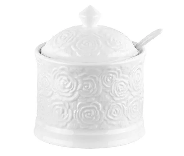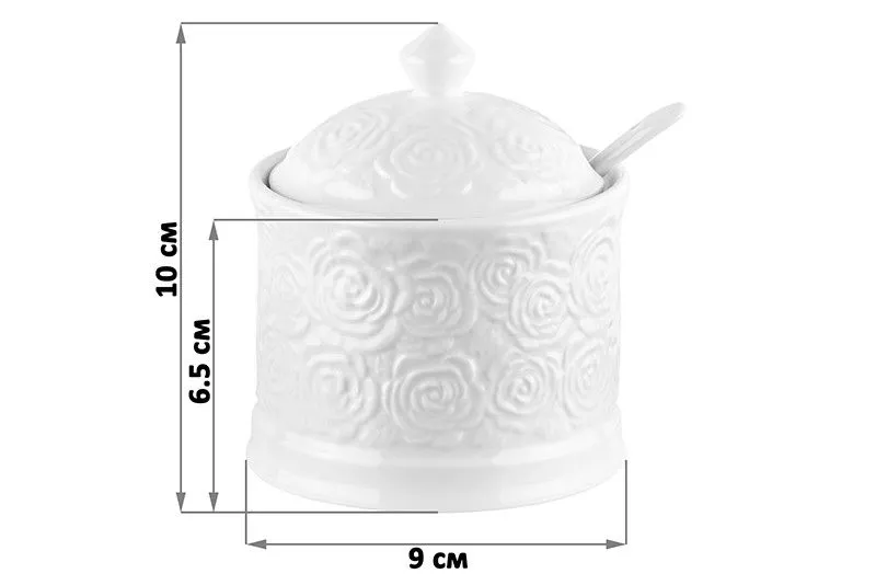 Сахарница "Розы" 9*9*10 см 270 мл, с ложкой, высота без крышки - 6,5 см