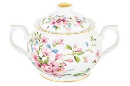 #Сахарница "Яблоневый цвет на белом" 15,5*10*10 см 380 мл, NEW BONE CHINA, в п/у, высота без крышки - 7 см