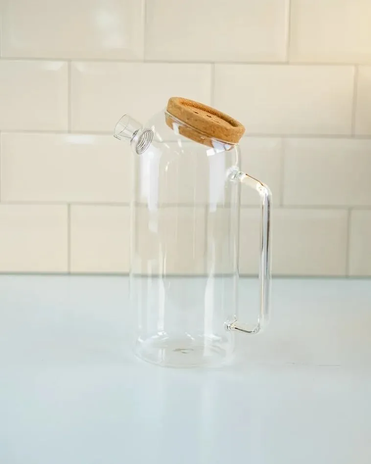Чайник из жаропрочного стекла с косым срезом и пробковой крышкой "Пуговка" 2000 мл P2000