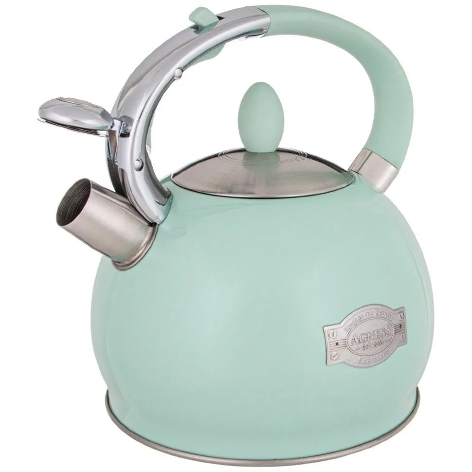 ЧАЙНИК AGNESS СО СВИСТКОМ 3,0 Л ТЕРМОАККУМУЛИРУЮЩЕЕ ДНО, ИНДУКЦИЯ мятный 937-838