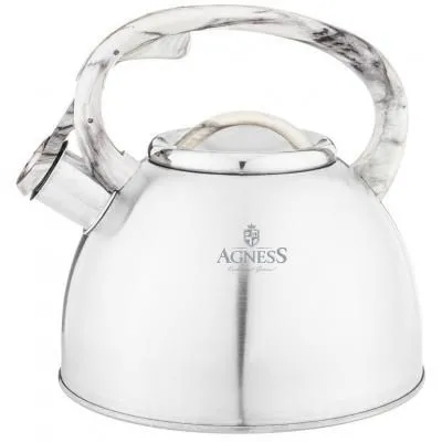 Чайник Agness со свистком, 3л c индукцион. капсульным дном и складывающейся ручкой цвет: пудровый 937-862