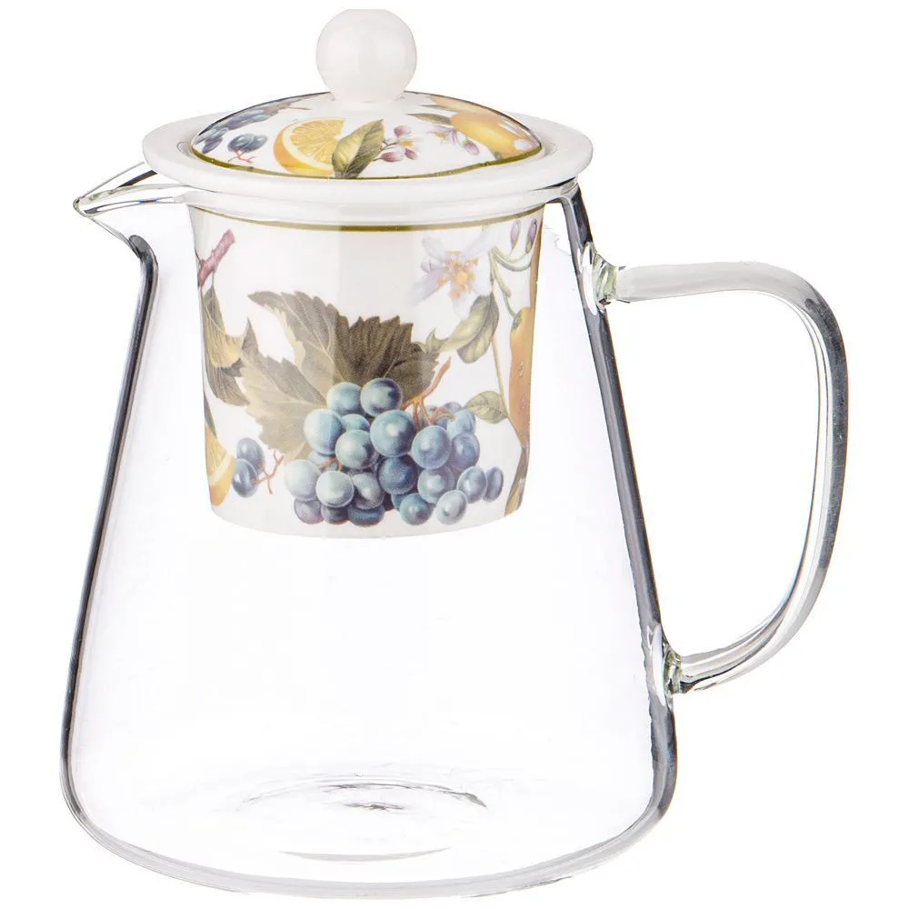 #ЧАЙНИК СТЕКЛЯННЫЙ С ФАРФОРОВЫМ СИТОМ LEFARD "ФРУКТЫ" 600 МЛ 104-904