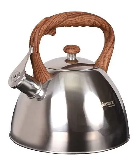 Чайник со свистком из нержавеющей стали 3л с ручкой под дерево