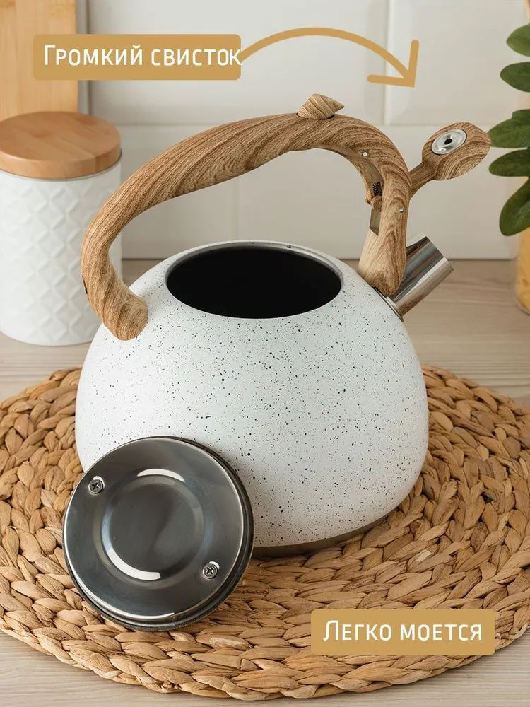 Чайник 2,8л со св индук [ГРАНИТ БЕЛЫЙ] soft-touch под дерево
