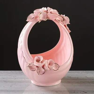 Конфетница "Корзина", розовая, лепка, золотистая роспись, 22 см, микс 4932694