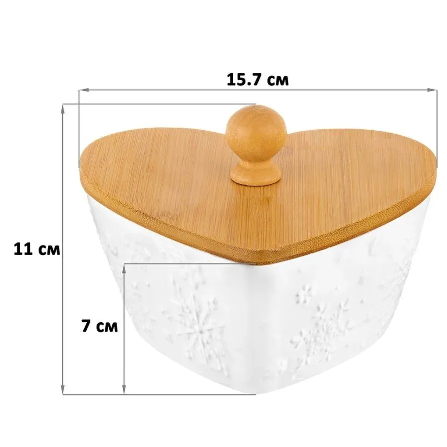 Банка фарфоровая для печенья "Снежинки" 15,7*14,5*11 см, 640 мл, с деревянной крышкой, высота без крышки - 7 см