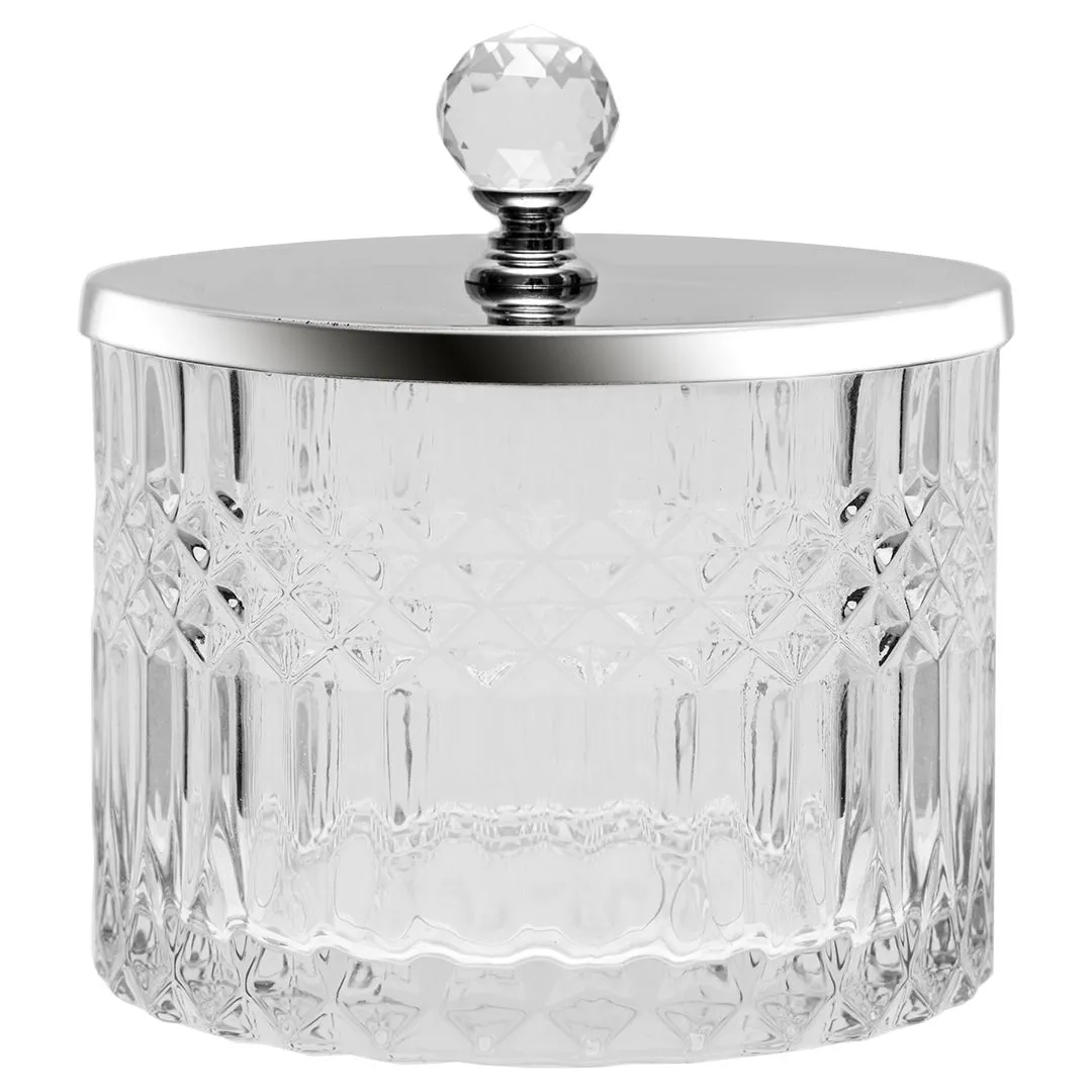 Стеклянная шкатулка с серебряной крышкой, Д105 Ш105 В120, прозрачный