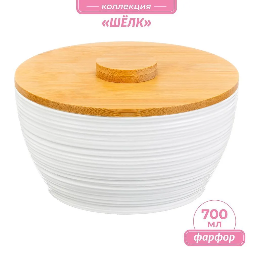 #Банка для печенья круглая "Шелк" 14,5*14,5*7,5 см, 700 мл, с деревянной крышкой, высота без крышки - 7,5 см