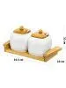 Набор 2 сахарниц "Белое кружево" 24,5*10*11 см. 400 мл. - каждая, с ложками и деревянными крышками, на деревянной подставке