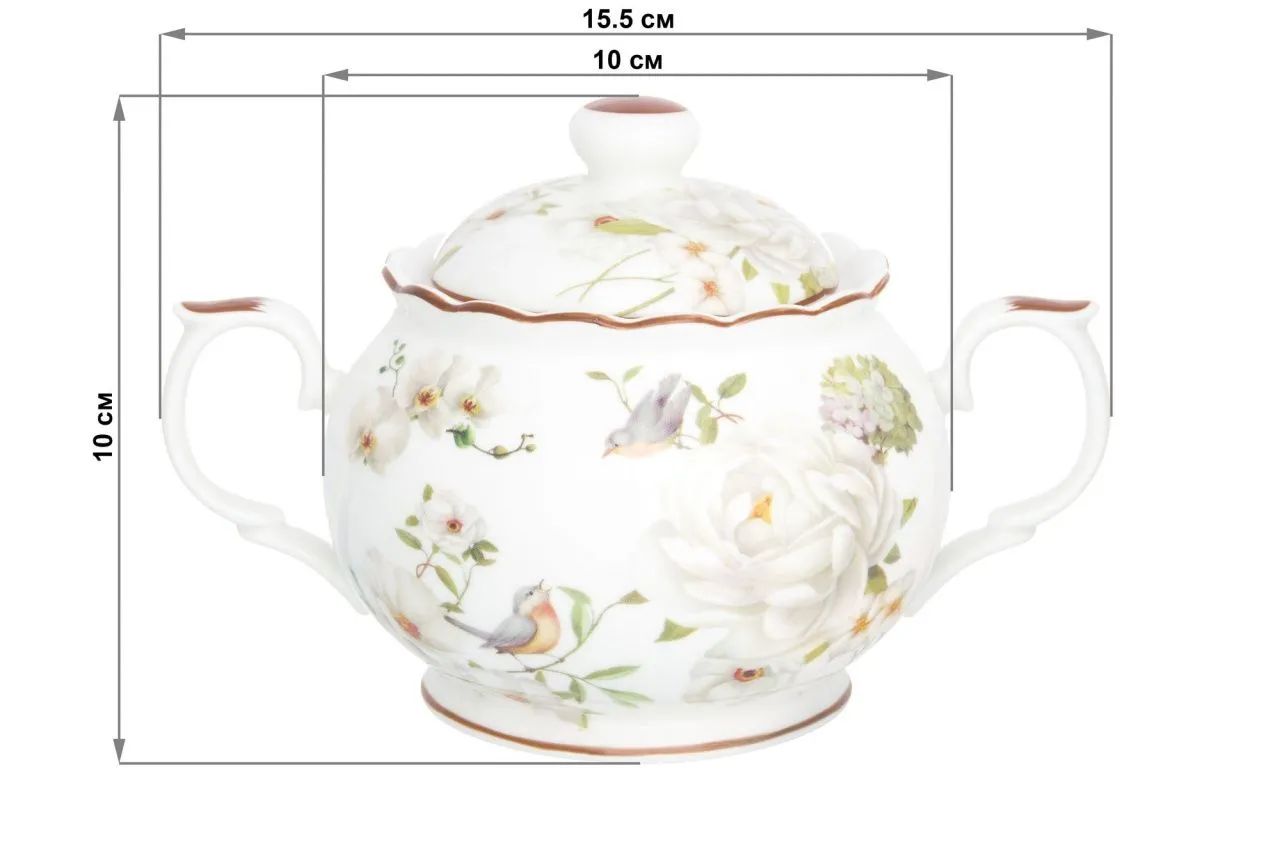 Сахарница "Дикая роза" 15,5*10*10 см 380 мл, NEW BONE CHINA, в п/у