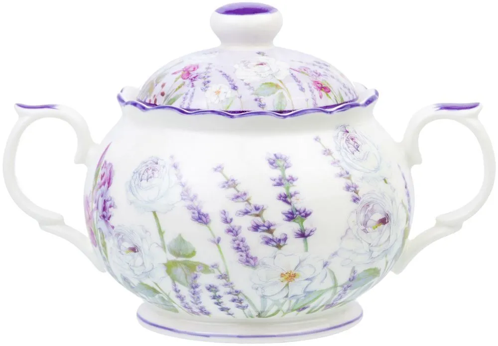 Сахарница "Лавандовое настроение" 15,5*10*10 см 350 мл, высота без крышки - 7 см, NEW BONE CHINA