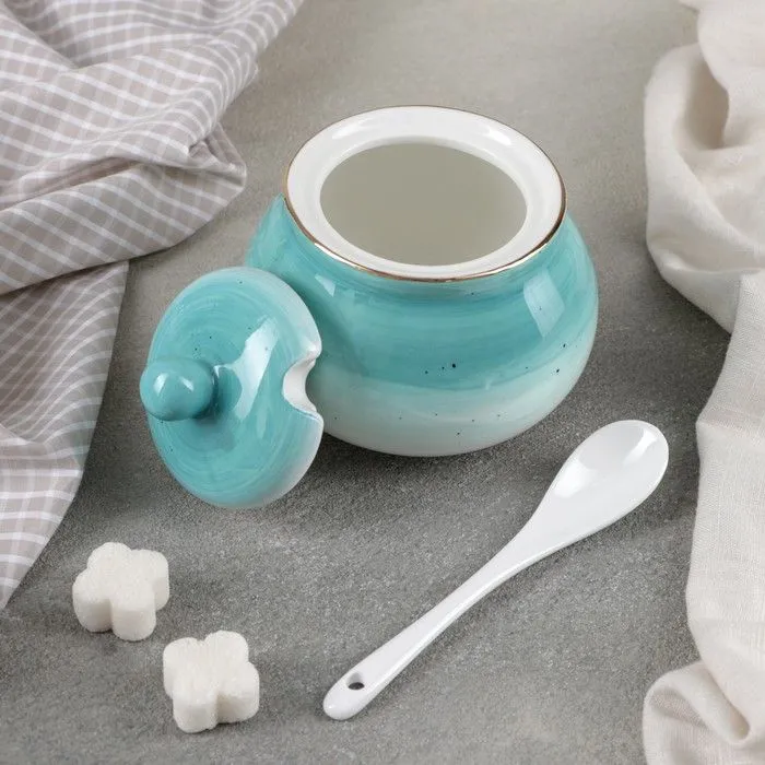 Сахарница с ложкой "Млечный путь" 280 мл, 10х10х10 см, цвет бирюза 4498111